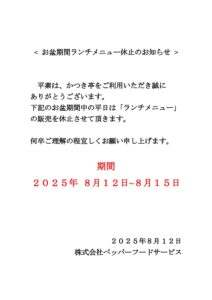 GW 期間ランチメニュー休止のお知らせ(かつき亭) 執筆者 wpmaster | 8月 12, 2025 | コメント0件 コメントを送信 コメントをキャンセルメールアドレスが公開されることはありません。 ※ が付いている欄は必須項目ですコメント ※ 名前 ※ メール ※ サイト 上に表示された文字を入力してください。 Δ